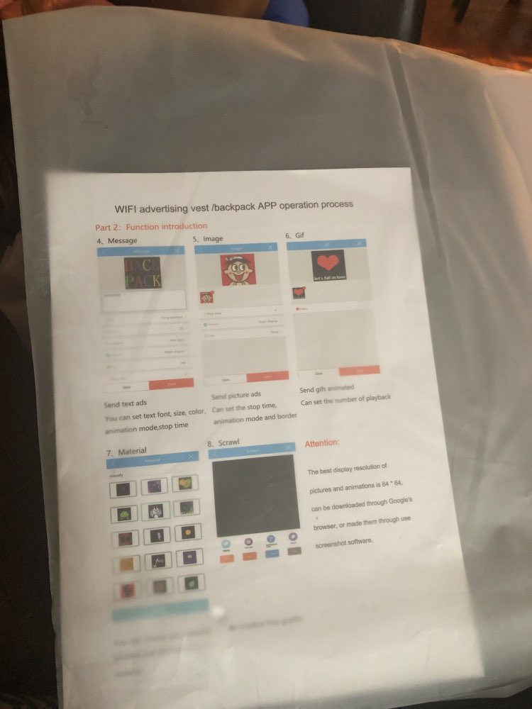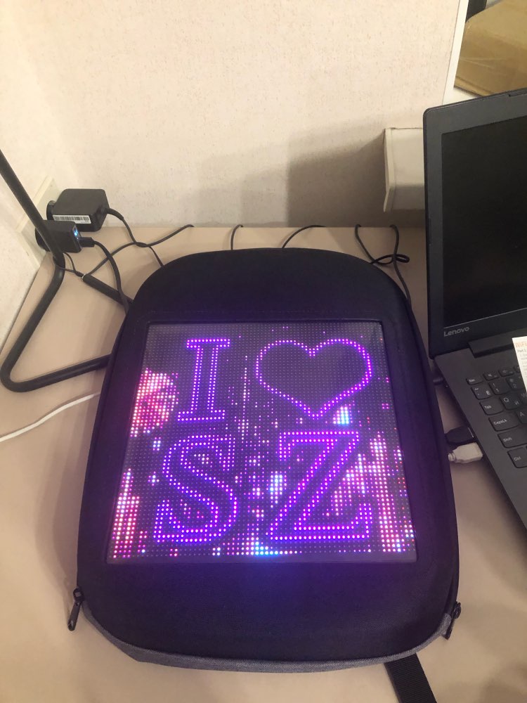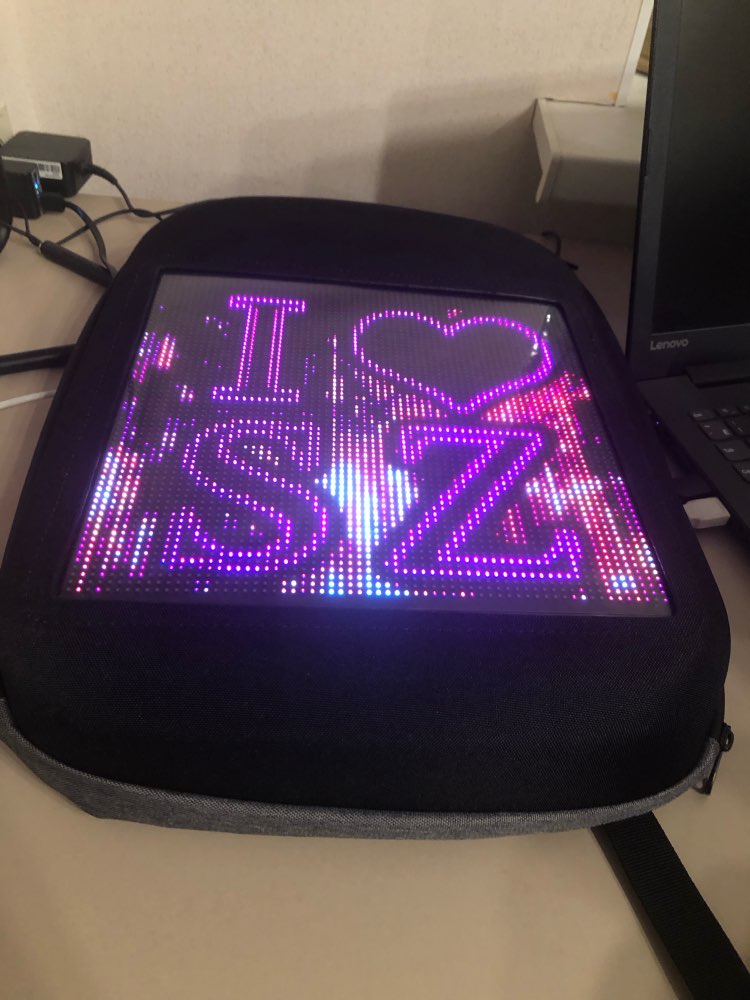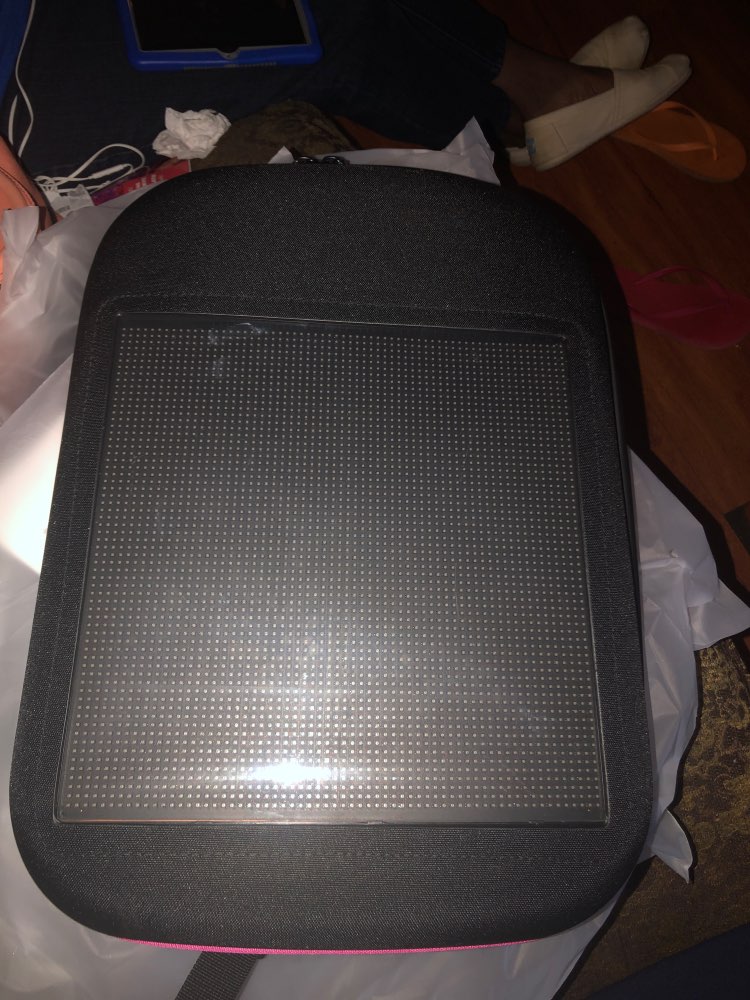 I absolutely love the bookbag. It's awesome and has so many more features and options for the LED display than the video and pictures let on. The seller was very professional and was always quick to respond to all my emails i would definitely buy from them again. I bought this for my 16 year old and he loves it, he changes what it says or does daily.Unique and very tech cool.